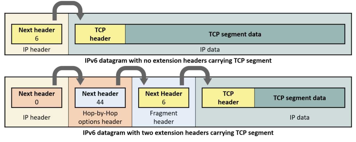 - 옵션, 라우팅, IPSec 등 payload 영역에 체인연결