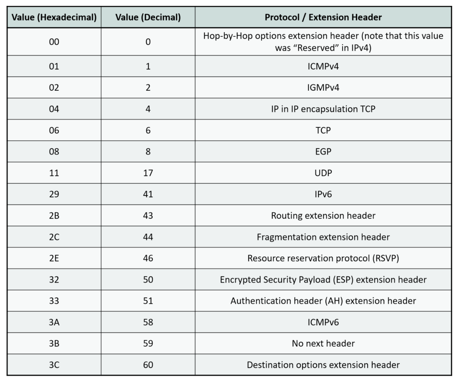 - IP 데이터그램이 목적지에 도착 후 IP 페이로드를 받아줄 transport 프로토콜 번호 (TCP=6, UDP=17 ...)