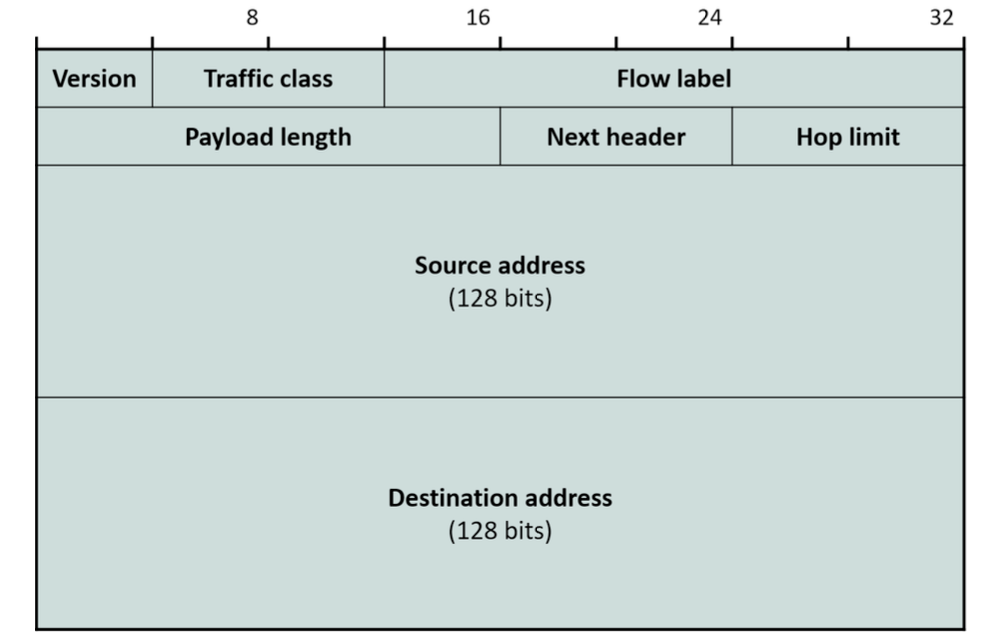 - Traffic class, flow label: QoS 관련 필드 -> 결국 또 안 쓰임