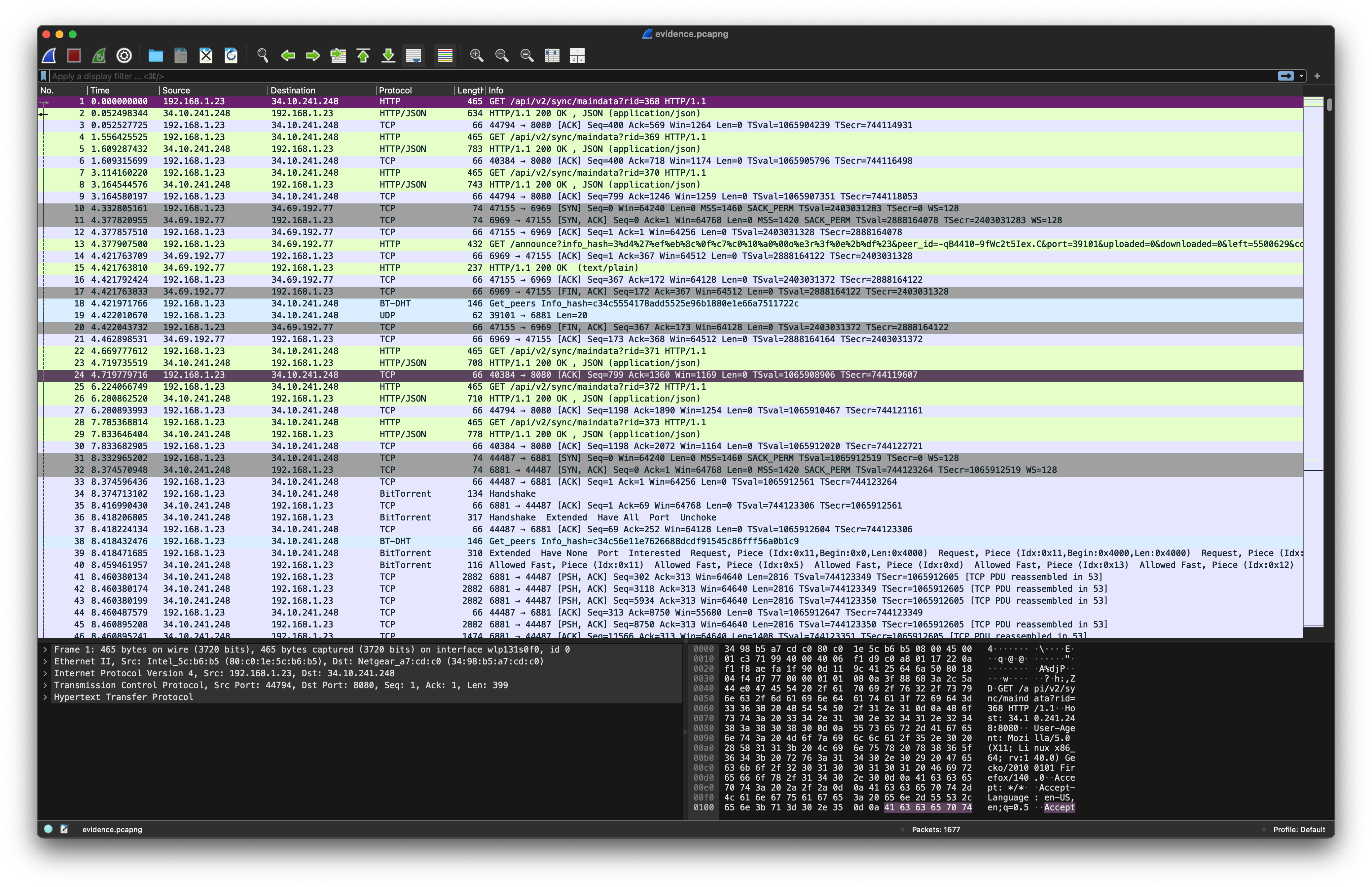 192.168.1.23 <-> 34.10.241.248의 의심스러운 통신