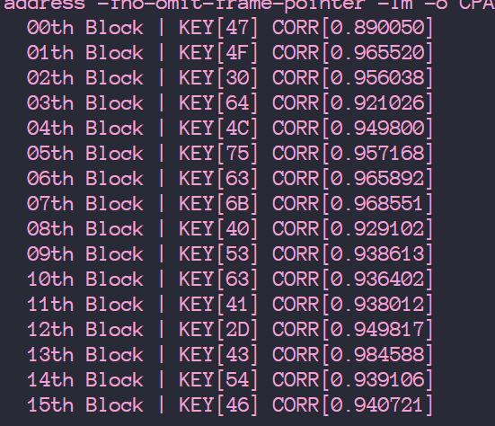 실제로 CPA로 추출한 마스터키는 실제 AES 연산에 사용된 마스터키임을 알 수 있다.