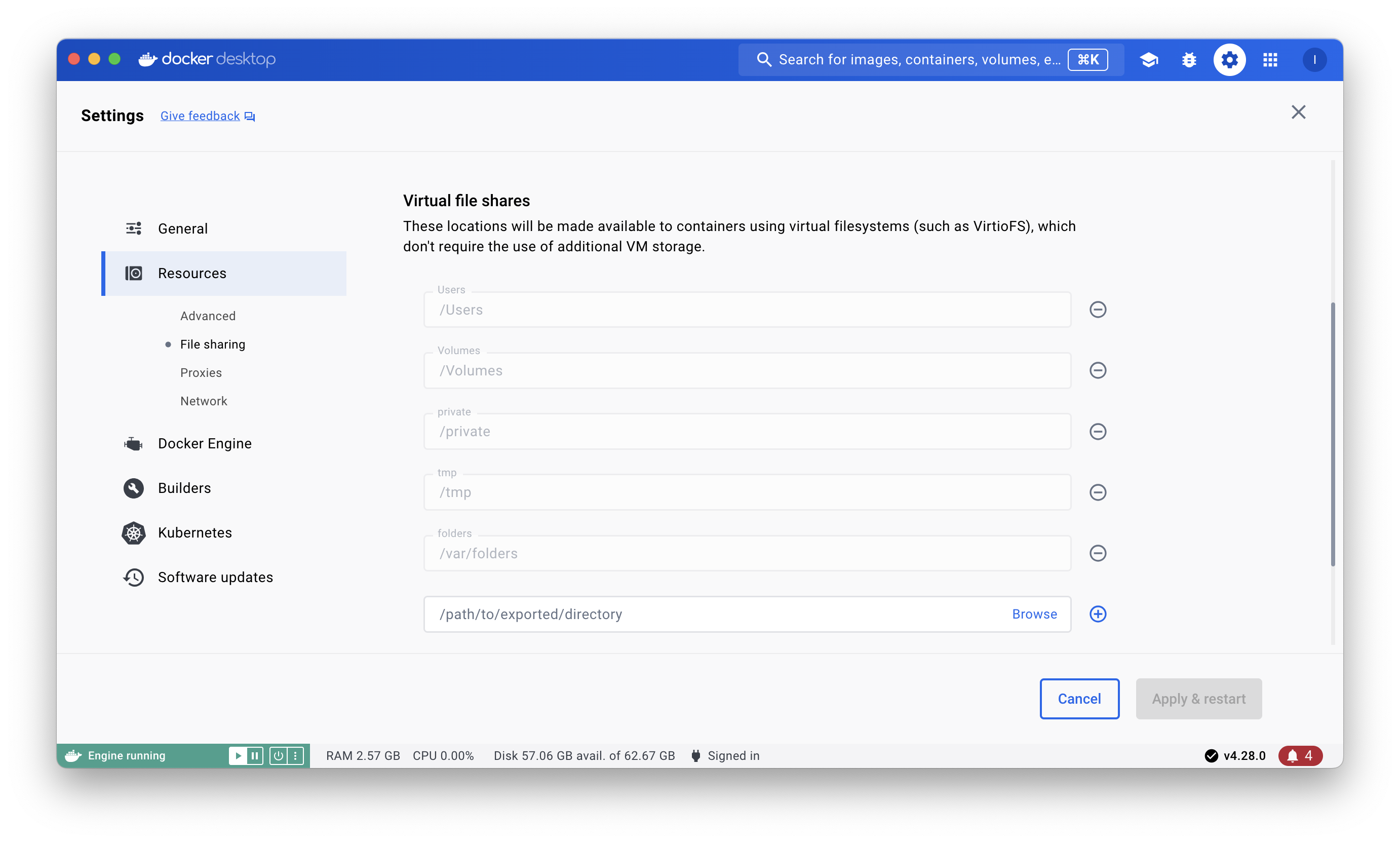 도커에서 FILE SHARING 기능을 이용해 파일 이동도 자유롭게 가능