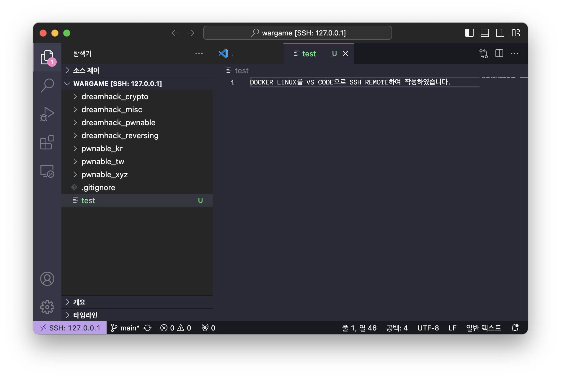 VS CODE에서는 SSH REMOTE를 통해 DOCKER LINUX를 연결