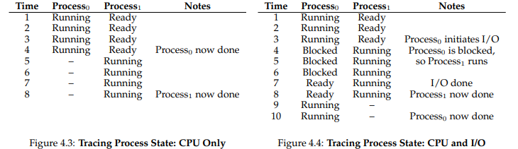 3. Process 0이 I/O 요청이 끝났지만, Process 1이 아직 Running 중이기에 Process 0은 Ready 한다. (Process 1이 선점)