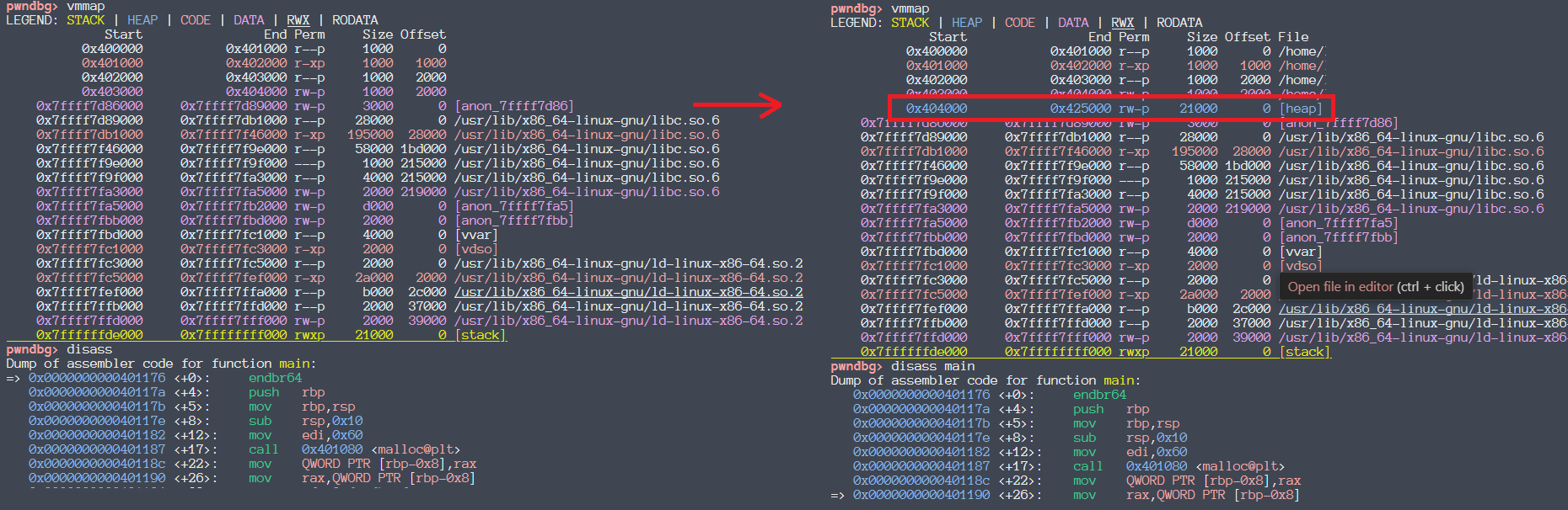 즉, ptmalloc에서는 heap을 처음 할당하면 heap이 할당된 위치에서 0x290 (대체로) 떨어진 위치에 있다.